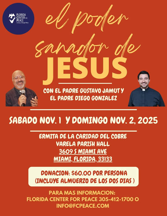 El Poder Sanador de Jesús Sábado 1 y domingo 2 de noviembre Ermita de la caridad del Cobre, Varela Parish Hall3609 S Miami AveMiami, Florida 33133